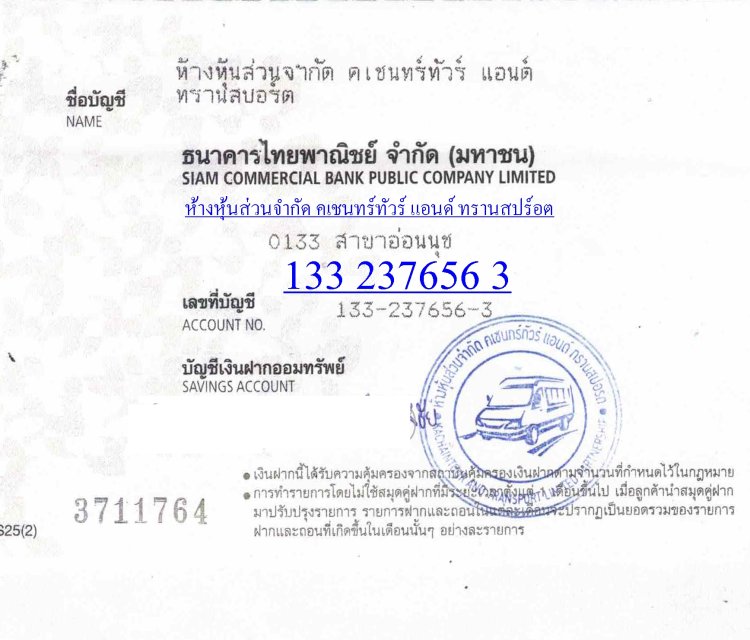 ชื่อบัญชี ่ ห้างหุ้นส่วนจำกัด คเชนทร์ทัวร์ แอนด์ ทรานสปอร์ต